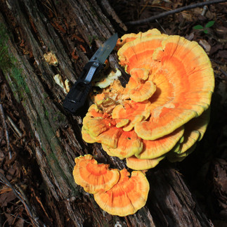 Responsibly Harvesting Your Chicken of the Woods: This is one of those times you'll really need your knife and basket or paper bag... trust me on this! Be sure to squeeze the shelfs/rosettes of the mushroom to feel for the most tender spots and cut so that you leave the tougher parts behind. Also be sure to inspect for any bug damage and leave those sections behind as well.